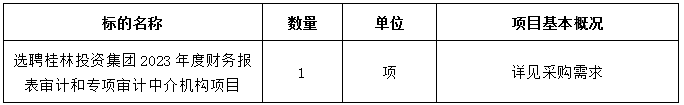 1.項目名稱:選聘桂林投資集團2023年度財務報表審計和專項審計中介機構項目