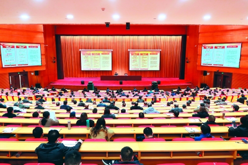 ▲12月4日上午,自治區(qū)宣講團(tuán)黨的十九屆五中全會(huì)精神宣講報(bào)告會(huì)在市會(huì)議中心舉行。?記者何平江 攝 【桂林日?qǐng)?bào)訊】(記者周紹瑜)根據(jù)自治區(qū)黨委的統(tǒng)一部署,12月4日上午,自治區(qū)宣講團(tuán)黨的十九屆五中...